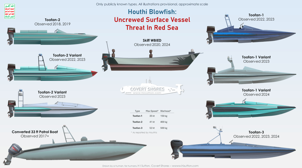 As of January 2026, the Houthis have executed over 120 attacks on commercial vessels. These operations use a diverse arsenal including anti-ship ballistic missiles (ASBMs), cruise missiles, one-way attack unmanned aerial vehicles (UAVs) and unmanned surface vehicles (USVs).[4]